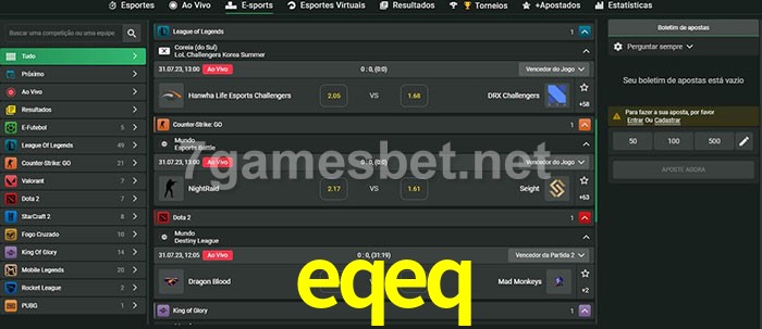 O eqeq oferece uma grande seleção de opções de apostas em e-sports com probabilidades competitivas